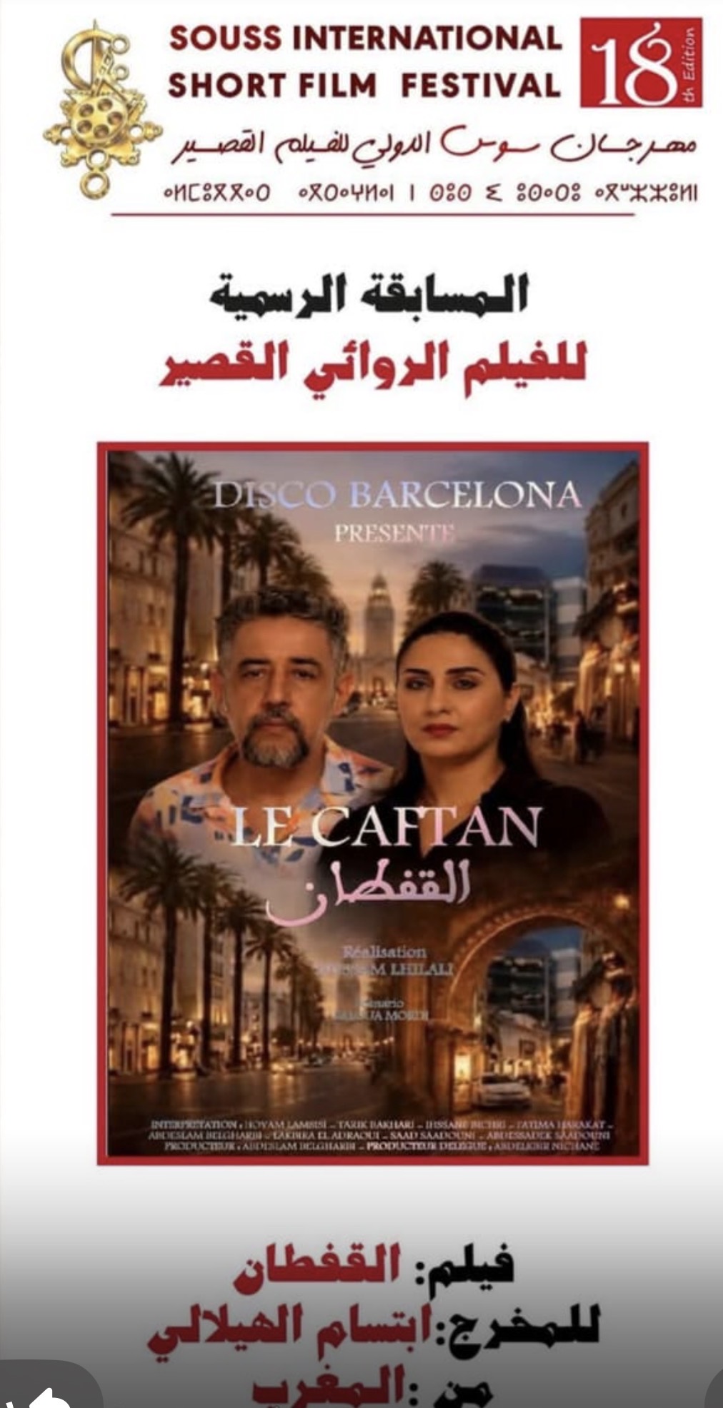 ومن بين الأعمال المنتظرة في هذه التظاهرة، يبرز فيلم “القفطان” الذي يحمل توقيع المنتج والفنان عبد السلام بلغربي المعروف فنياً بلقب برشلونة، والذي تولت إنتاجه شركة ديسكو برشلونة. ويأتي هذا العمل برؤية فنية تمزج بين الحس الإبداعي والطرح الواقعي، ما جعله يثير اهتمام المتابعين منذ الإعلان عن مشاركته ضمن المسابقة الرسمية. ويضم الفيلم طاقماً فنياً يجمع بين التجربة والوجوه الصاعدة، تتقدمهم الممثلة الريفية الشابة هيام لمسيسي إلى جانب الفنان طارق البخاري، إضافة إلى فاطمة حركات وإحسان البشيري ولكبيرة العدرواي، فضلاً عن مشاركة عبد السلام بلغربي الذي يجمع بين الإنتاج والتشخيص.