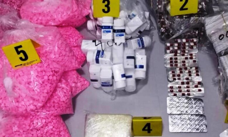 وحسب مصادر مطلعة، أسفرت العملية عن حجز 216 غرامًا من مخدر الكوكايين، و101 قرصًا مهلوسًا من نوع “ترونكيمازين”، إضافة إلى مبلغ مالي قدره 3060 درهمًا يُشتبه في كونه من عائدات الترويج. كما تم ضبط سيارة من نوع مرسيدس تحمل لوحات ترقيم مزورة، وقنينة غاز مسيل للدموع، وسيف كبير الحجم، إلى جانب خمس هواتف نقالة وميزانين إلكترونيين يُستخدمان في وزن المخدرات.