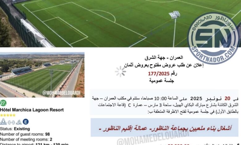 ويأتي هذا المشروع ليعزز موقع الناظور كوجهة رياضية وسياحية صاعدة، وسط ترقب واسع من الجماهير لمعرفة المنتخب العالمي الذي سيقيم معسكره التدريبي في المدينة.