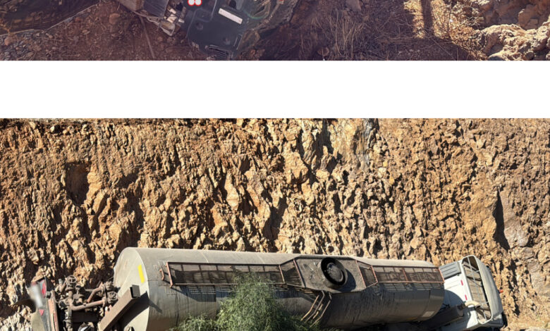 انقلاب شاحنة محملة بالزفت يتسبب في إصابة سائقها وحالة ارتباك مروري بين بني أنصار وأزغنغان