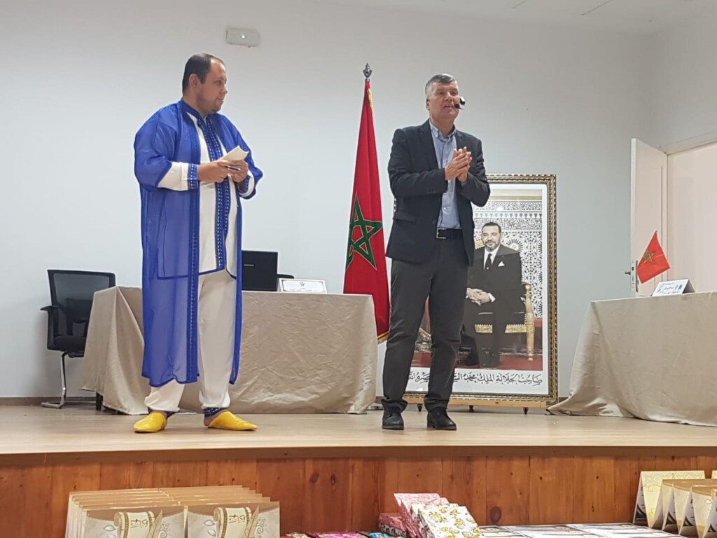 حيت تم الافتتاح بتلاوة آيات بينات من الذكر الحكيم تلاها القارئ أمحمد الحسناوي ومن ثم اداء النشيد الوطني المغربي جماعة وكلمة السيد محمد امعيو رئيس جمعية الوفاء للتكافل والتنمية البشرية وبعض الكلمات المقتضبة بالمناسبة.