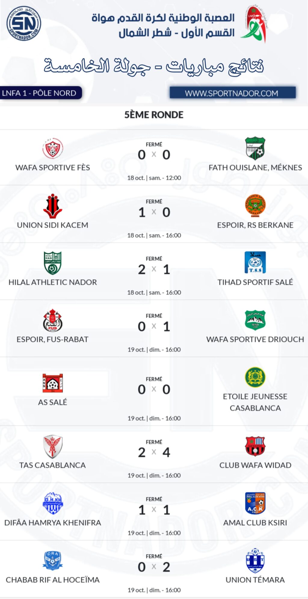 نتائج وترتيب القسم الاول هواة اتحاد تمارة يعتلي صدارة القسم الأول هواة برصيد 11 نقطة