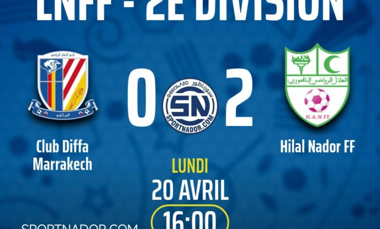 حقق فريق هلال الناظور فوزاً مهماً خارج قواعده بعد تغلبه على مضيفه دفاع مراكش بهدفين دون رد في المباراة التي جمعتهما بمدينة مراكش، ضمن منافسات الجولة الثامنة عشرة من بطولة القسم الاحترافي الثاني لكرة القدم، في نتيجة عززت موقع الفريق الناظوري في سبورة الترتيب وأكدت طموحه الكبير هذا الموسم.
