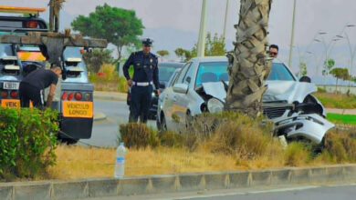 حادثة سير خطيرة على كورنيش الناظور إثر اصطدام سيارة بشجرة نخيل